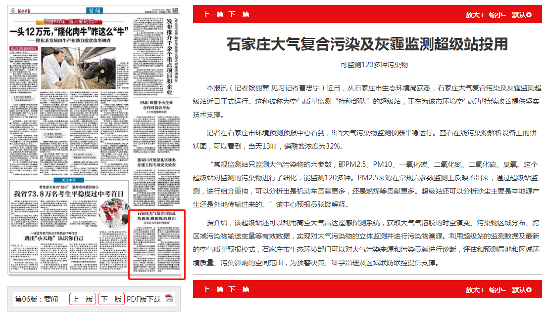 据介绍,该超级站还可以利用高空大气雷达遥感探测系统,获取大气气溶胶的时空演变、污染物区域分布、跨区域污染物输送变量等有效数据,实现对大气污染物的立体监测并进行污染物溯源。利用超级站的监测数据及最新的空气质量预报模式,石家庄市生态环境部门可以对大气污染来源和污染贡献进行诊断,评估和预测局地和区域环境质量、污染影响的空间范围,为预警决策、科学治理及区域联防联控提供支撑。