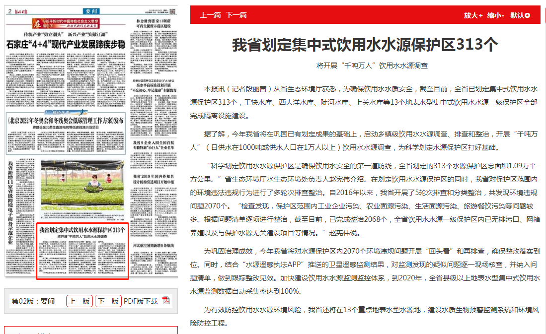 据了解,今年我省将在巩固已有划定成果的基础上,启动乡镇级饮用水水源调查、排查和整治,开展“千吨万人”(日供水在1000吨或供水人口在1万人以上)饮用水水源调查,为科学划定水源保护区打好基础。