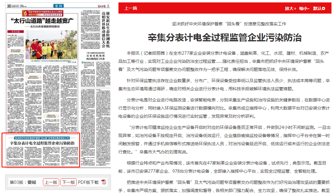 针对环保监管执法存在企业数量多、分布广、环保设备受控率低以及监管执法人员少、执法成本高等问题,辛集市生态环境局通过调研,确定对相关企业进行分表计电,用科技手段破解环境执法监管难题。