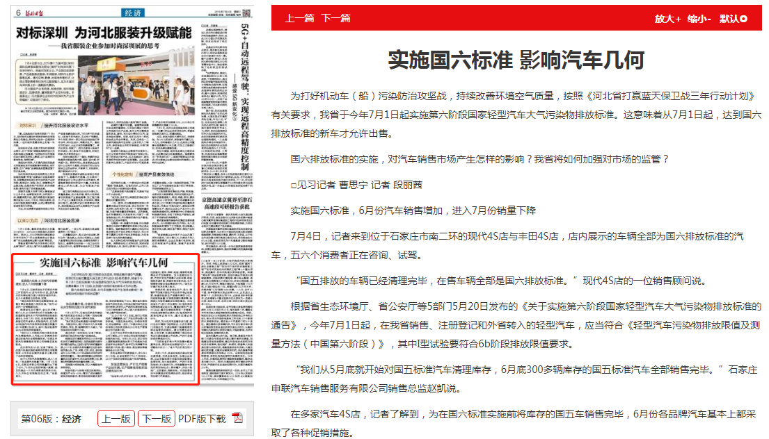 为打好机动车(船)污染防治攻坚战,持续改善环境空气质量,按照《河北省打赢蓝天保卫战三年行动计划》有关要求,我省于今年7月1日起实施第六阶段国家轻型汽车大气污染物排放标准。这意味着从7月1日起,达到国六排放标准的新车才允许出售。
