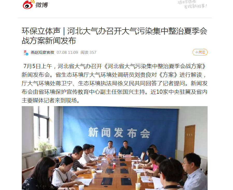 环保立体声 | 河北大气办召开大气污染集中整治夏季会战方案新闻发布