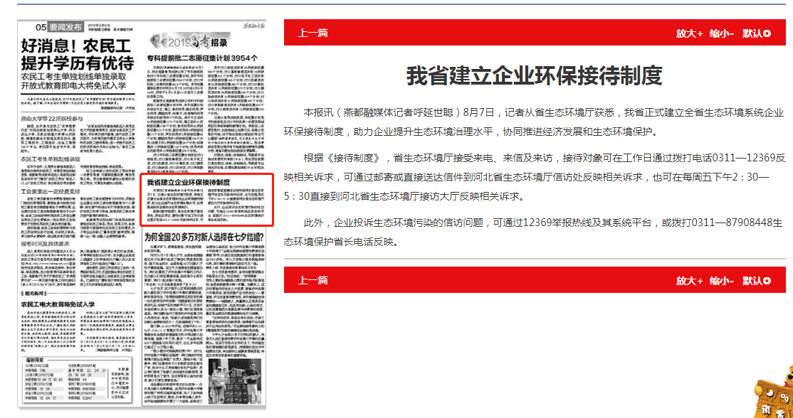 此外,企业投诉生态环境污染的信访问题,可通过12369举报热线及其系统平台,或拨打0311—87908448生态环境保护省长电话反映。