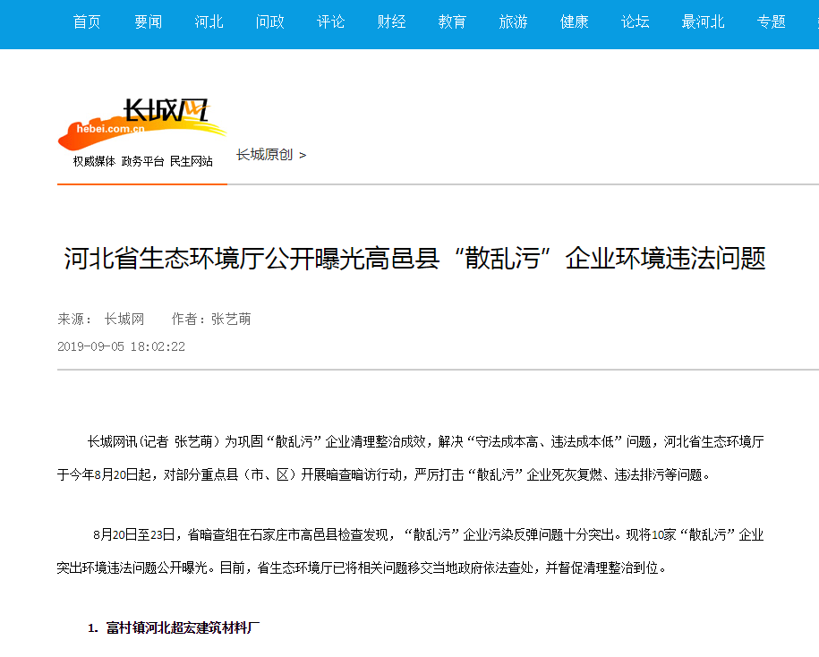 8月20日至23日,省暗查组在石家庄市高邑县检查发现,“散乱污”企业污染反弹问题十分突出。现将10家“散乱污”企业突出环境违法问题公开曝光。目前,东京热 已将相关问题移交当地政府依法查处,并督促清理整治到位。