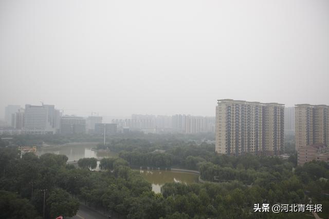 ■10月23日午后,石家庄水上公园附近建筑笼罩在雾霾中
