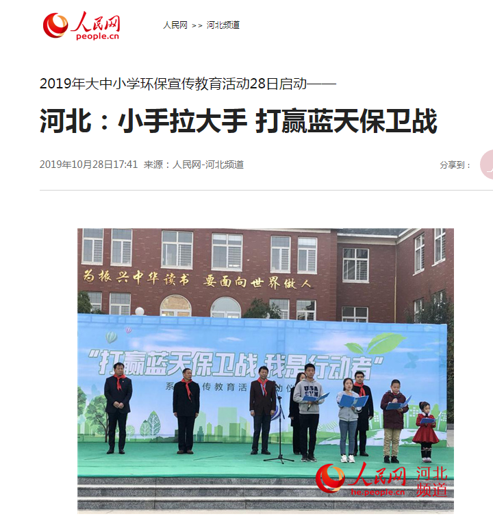 人民网:2019年大中小学环保宣传教育活动28日启动—— 河北:小手拉大手 打赢蓝天保卫战