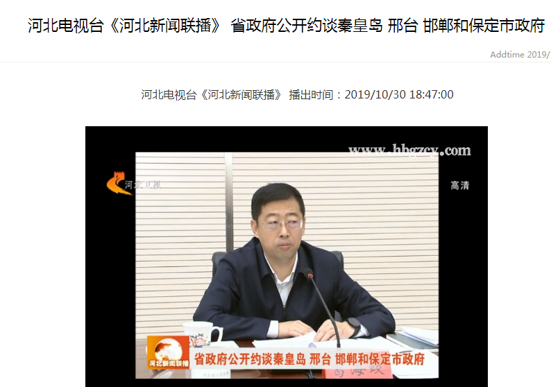 河北电视台《河北新闻联播》:省政府公开约谈秦皇岛 邢台 邯郸和保定市政府