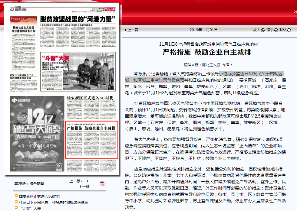 11月1日8时起我省启动区域重污染天气Ⅱ级应急响应