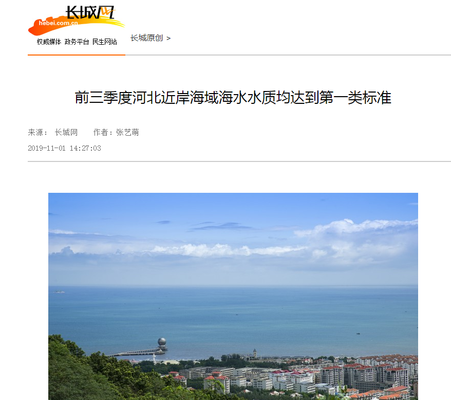 长城网:前三季度河北近岸海域海水水质均达到第一类标准
