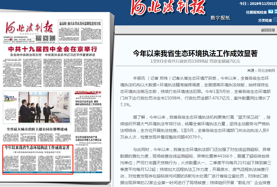 与此同时,今年以来,我省生态环境执法部门还加强了对在线监测超标、异常数据的查处力度,现场核查在线监测超标、异常处置单44366个,震慑了超标排放排污单位;严厉打击露天焚烧行为,火点数量从一、二季度平均每月2191起下降到第三季度平均每月522起;持续加大远程执法工作力度,开展废水、废气远程执法抽查行动,对检查发现存在超标排污问题的8家污水处理厂进行省级立案处罚,对排放口数据出现异常的22家企业第一时间进行了现场核查;持续组织开展“散乱污”企业排查整治,截至9月底,全省各地自查发现“散乱污”企业共1829家,目前已完成整治1731家,关停取缔1552家;组织开展“碧水2019”环境执法行动,检查涉水企业25433家,发现并督促整改涉水环境问题3451个。
