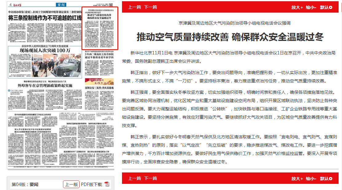 韩正强调,要全面落实秋冬季攻坚方案,切实加强组织领导,明确时间表和责任人,确保各项措施落地见效。要完善区域协同治理机制,优化区域产业和重大基础设施建设空间布局,组织开展区域联动执法,坚决防止各种突出问题反弹。要大力调整运输结构,积极推进“公转铁”,加快铁路与港口连接线、工矿企业铁路专用线等重大基础设施建设。要坚持分类施策,有效应对重污染天气。要继续抓好大气攻关项目,为区域空气质量改善提供有力科技支撑。