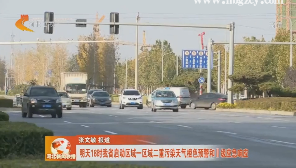 河北电视台《河北新闻联播》:明天18时我省启动区域一区域二重污染天气橙色预警和II级应急响应