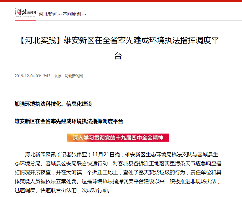 河北新闻网:【河北实践】雄安新区在全省率先建成环境执法指挥调度平台