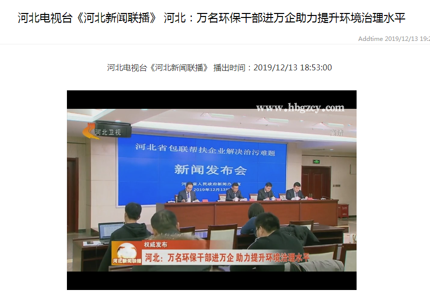 河北电视台《河北新闻联播》 :河北万名环保干部进万企助力提升环境治理水平