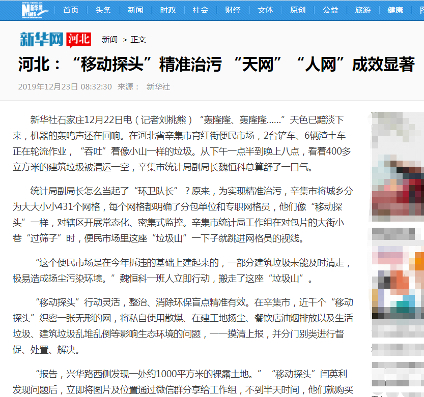 “移动探头”行动灵活,整治、消除环保盲点精准有效。在辛集市,近千个“移动探头”织密一张无形的网,将私自使用散煤、在建工地扬尘、餐饮店油烟排放以及生活垃圾、建筑垃圾乱堆乱倒等影响生态环境的问题,一一摸清上报,并分门别类进行督促、处置、解决。