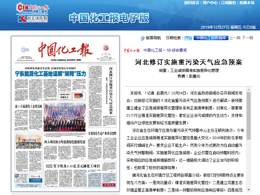 中国化工报:河北修订实施重污染天气应急预案