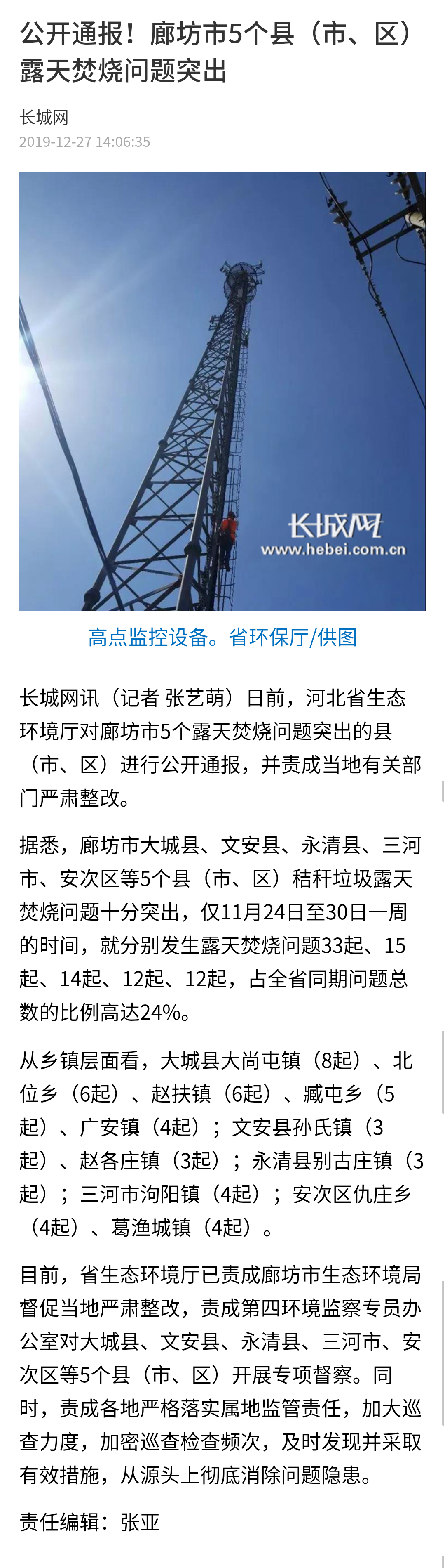 长城网:公开通报!廊坊市5个县(市、区)露天焚烧问题突出
