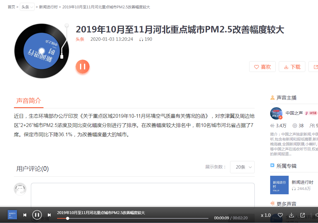 中国之声:2019年10月至11月河北重点城市PM2.5改善幅度较大