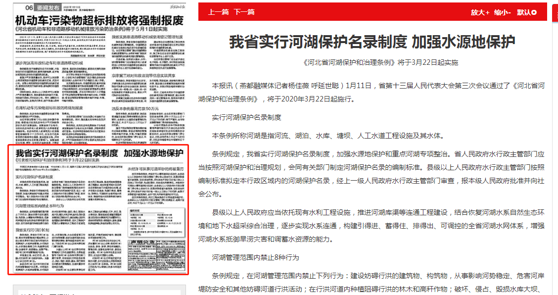 本报讯(燕都融媒体记者杨佳薇 呼延世聪)1月11日,省第十三届人民代表大会第三次会议通过了《河北省河湖保护和治理条例》,将于2020年3月22日起施行。