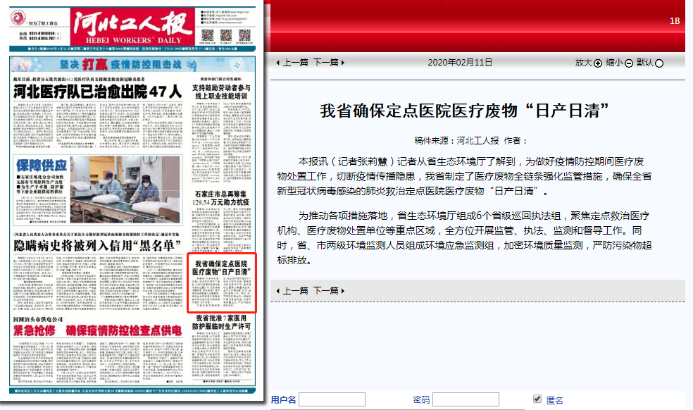 河北工人报: 我省确保定点医院医疗废物“日产日清”