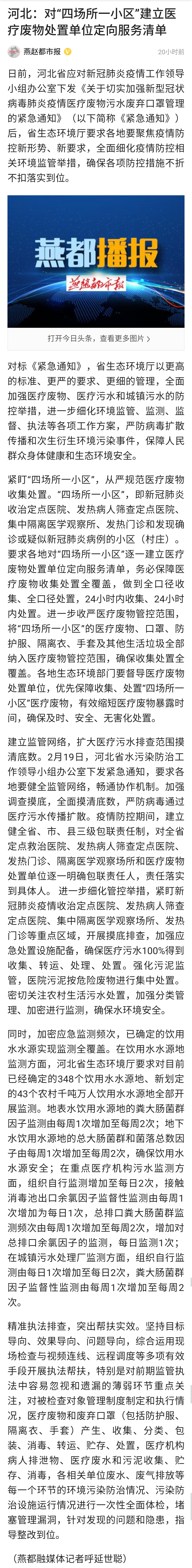 燕赵都市报:河北 对“四场所一小区”建立医疗废物处置单位定向服务清单