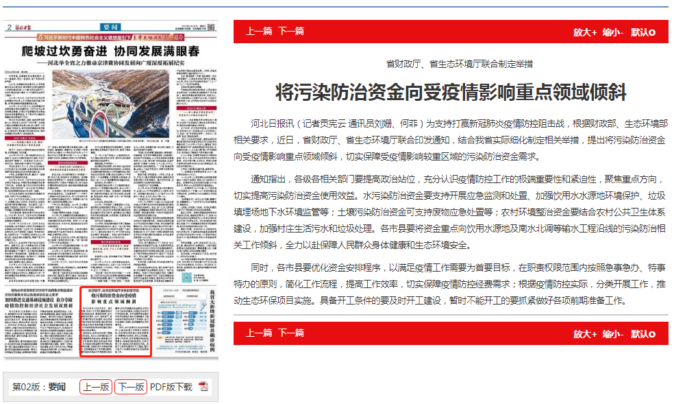 河北日报讯(记者贡宪云 通讯员刘姗、何菲)为支持打赢新冠肺炎疫情防控阻击战,根据财政部、生态环境部相关要求,近日,省财政厅、东京热 联合印发通知,结合我省实际细化制定相关举措,提出将污染防治资金向受疫情影响重点领域倾斜,切实保障受疫情影响较重区域的污染防治资金需求。