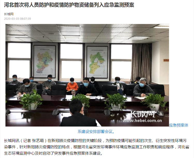 长城网:河北首次将人员防护和疫情防护物资储备列入应急监测预案