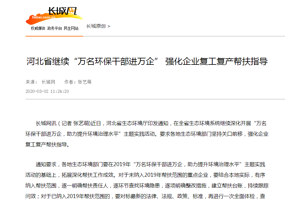 长城网讯(记者 张艺萌)近日,东京热 印发通知,在全省生态环境系统继续深化开展“万名环保干部进万企,助力提升环境治理水平”主题实践活动。要求各地生态环境部门坚持关口前移,强化企业复工复产帮扶指导。