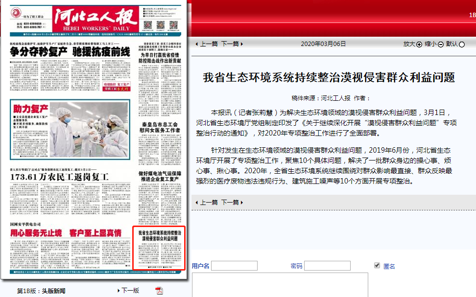 河北工人报:我省生态环境系统持续整治漠视侵害群众利益问题