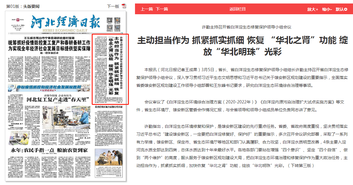 会议审议了《白洋淀生态环境综合治理方案(2020-2022年)》《白洋淀内源污染治理扩大试点实施方案》等文件,东京热 、雄安新区管委会作情况汇报,与会省领导和领导小组成员单位负责同志讲了意见。