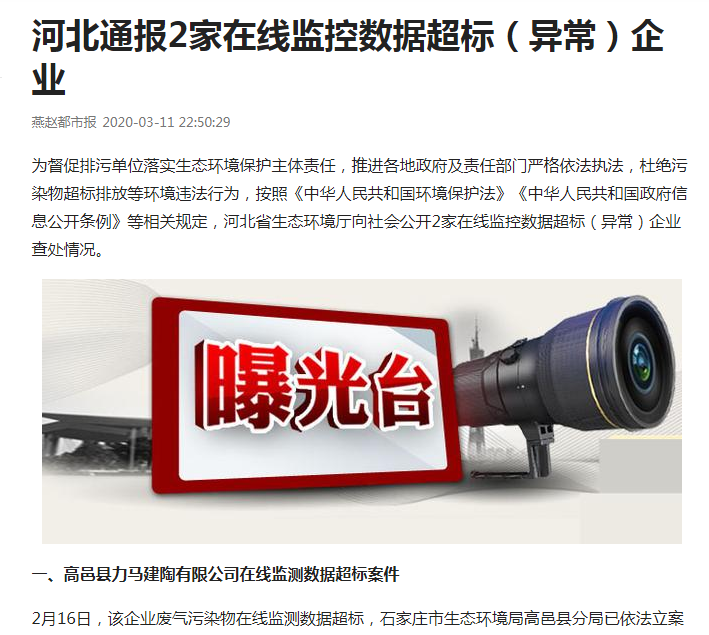 一、高邑县力马建陶有限公司在线监测数据超标案件