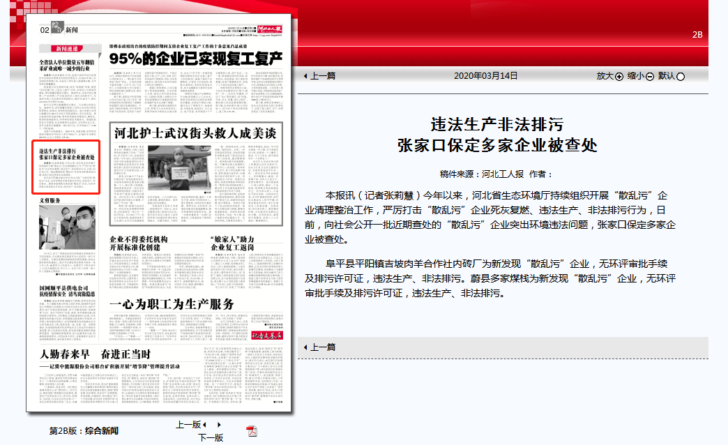 河北工人报:违法生产非法排污 张家口保定多家企业被查处