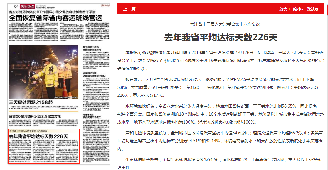 本报讯(燕都融媒体记者呼延世聪)2019年全省环境怎么样?3月26日,河北省第十三届人民代表大会常务委员会第十六次会议听取了《河北省人民政府关于2019年环境状况和环境保护目标完成情况及秋冬季大气污染综合治理情况的报告》。