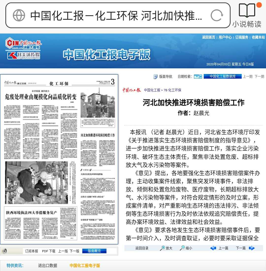 中国化工报:河北加快推进环境损害赔偿工作