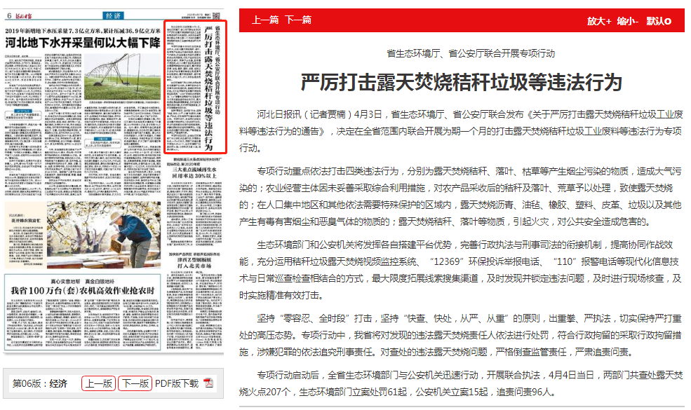 专项行动启动后,全省生态环境部门与公安机关迅速行动,开展联合执法,4月4日当日,两部门共查处露天焚烧火点207个,生态环境部门立案处罚61起,公安机关立案15起,追责问责96人。
