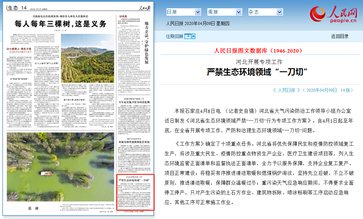 人民日报:河北开展专项工作 严禁生态环境领域“一刀切”
