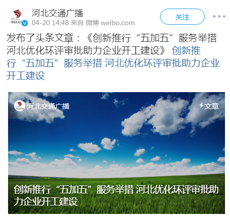发出通知,提出在全省推行“五加五”环评审批服务,进一步优化重点项目环评审批服务措施,支持疫情防控期间项目开工建设,助力经济恢复和稳定增长。