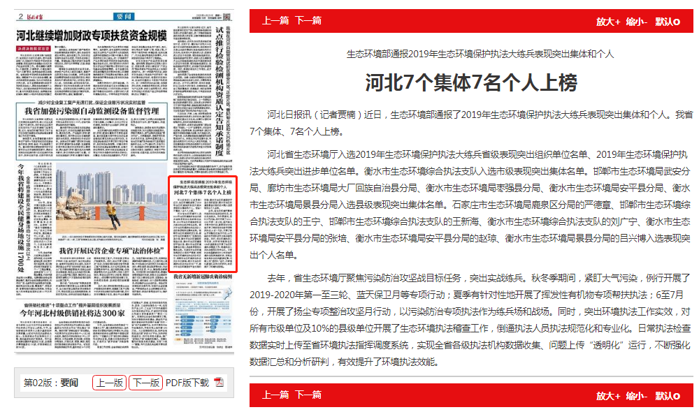 河北日报讯(记者贾楠)近日,生态环境部通报了2019年生态环境保护执法大练兵表现突出集体和个人。我省7个集体、7名个人上榜。