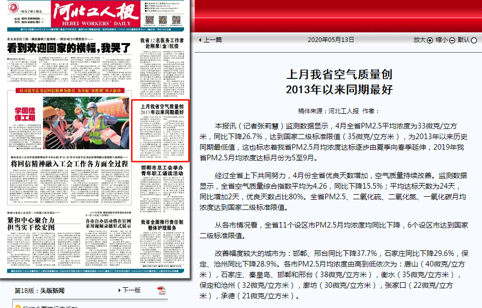 改善幅度较大的城市为:邯郸、邢台同比下降37.7%,石家庄同比下降29.6%,保定、沧州同比下降28.9%。各市PM2.5月均浓度由高到低依次为:唐山(40微克/立方米),石家庄、秦皇岛、邯郸和邢台(38微克/立方米),衡水(35微克/立方米),保定和沧州(32微克/立方米),廊坊(30微克/立方米),张家口(22微克/立方米),承德(21微克/立方米)。