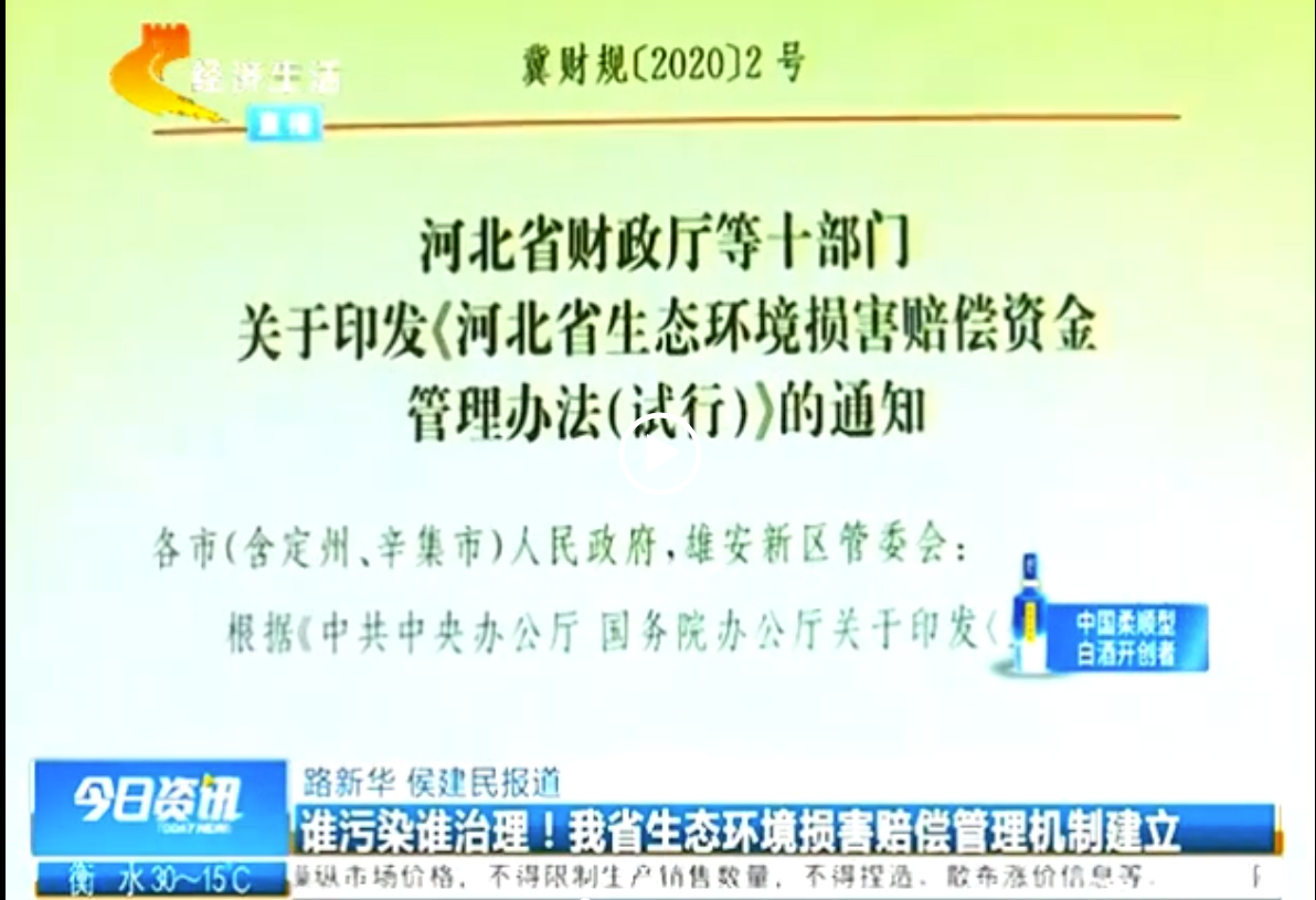 河北电视台《今日资讯》:谁污染谁治理!我省生态环境损害赔偿管理机制建立