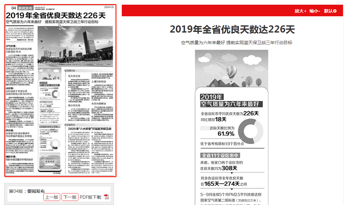 6月4日,河北省政府新闻办召开新闻发布会,发布《2019年河北省生态环境质量状况公报》。2019年,全省PM2.5平均浓度为50.2微克/立方米,比2018年下降5.8%,提前实现《蓝天保卫战三年行动方案》和“十三五”规划确定的2020年目标(55微克/立方米),空气质量为六年来最好。