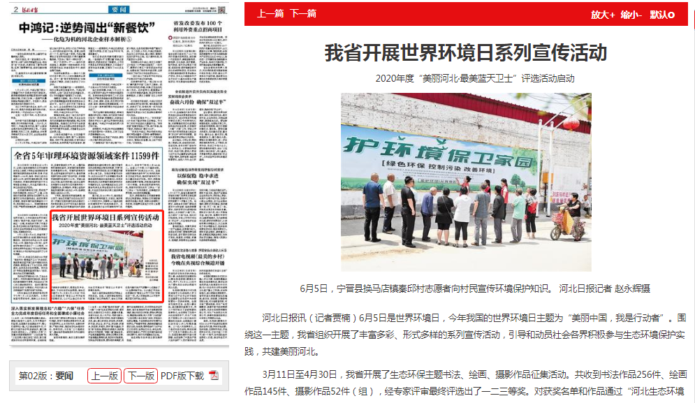 6月5日,我省正式启动2020年度“美丽河北·最美蓝天卫士”评选活动,推选表彰在蓝天保卫战中涌现出的先进典型,营造全省上下合力攻坚、积极参与、全民共治的良好氛围。同时启动“寻找全国最美基层环保人”活动,择优向生态环境部推荐。