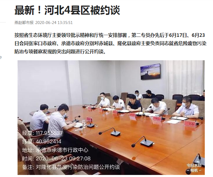 6月23日,在隆化县约谈会议上,通报了隆化县对省级环保督察反馈危险废物污染防治问题整改不到位、督促二类及以上机动车维修企业在河北省固体废物动态信息平台注册不到位、一些企业守法自律意识不到位等突出问题,隆化县政府主要负责同志作了表态发言。