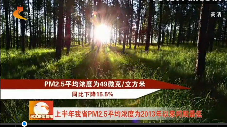河北电视台《河北新闻联播》:上半年我省PM2.5平均浓度为2013年以来同期最低