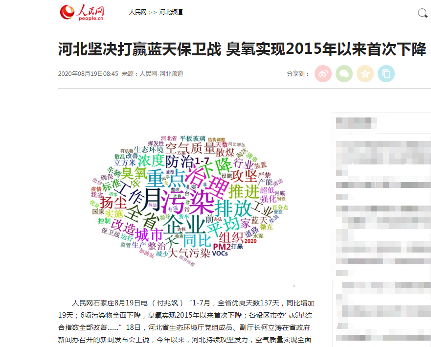 人民网:河北坚决打赢蓝天保卫战 臭氧实现2015年以来首次下降