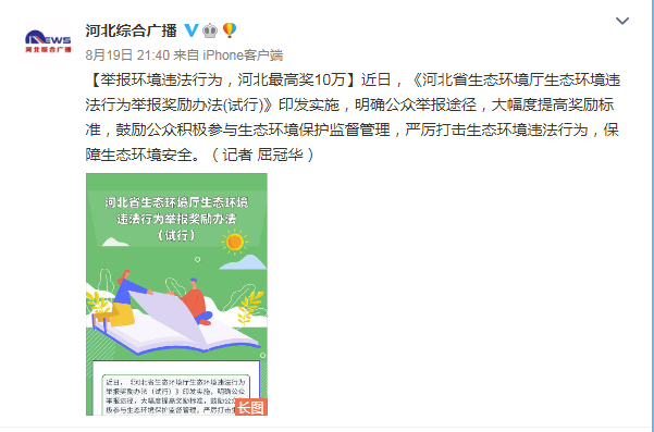河北综合广播微博:最高奖励10万!发现这些违法行为请举报