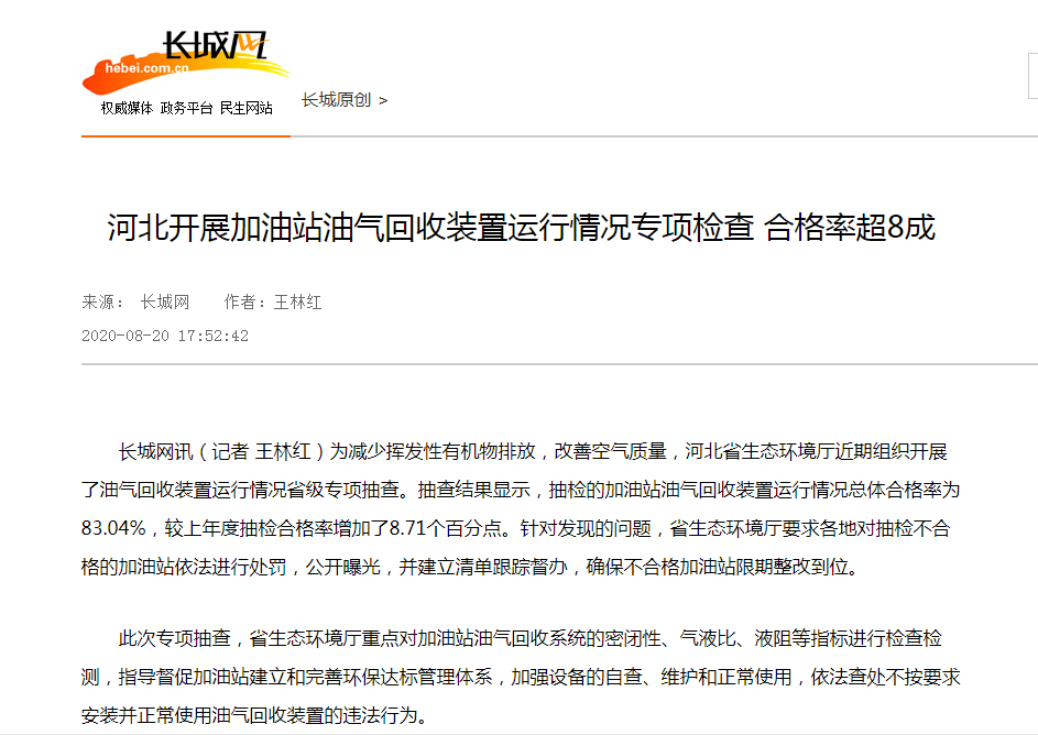 长城网讯(记者 王林红)为减少挥发性有机物排放,改善空气质量,东京热 近期组织开展了油气回收装置运行情况省级专项抽查。抽查结果显示,抽检的加油站油气回收装置运行情况总体合格率为83.04%,较上年度抽检合格率增加了8.71个百分点。针对发现的问题,东京热 要求各地对抽检不合格的加油站依法进行处罚,公开曝光,并建立清单跟踪督办,确保不合格加油站限期整改到位。