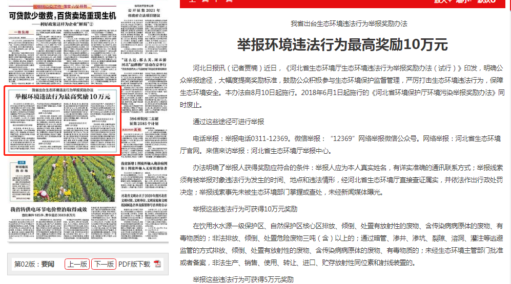 河北日报讯(记者贾楠)近日,《东京热 生态环境违法行为举报奖励办法(试行)》印发,明确公众举报途径,大幅度提高奖励标准,鼓励公众积极参与生态环境保护监督管理,严厉打击生态环境违法行为,保障生态环境安全。本办法自8月10日起施行。2018年6月1日起施行的《河北省环境保护厅环境污染举报奖励办法》同时废止。