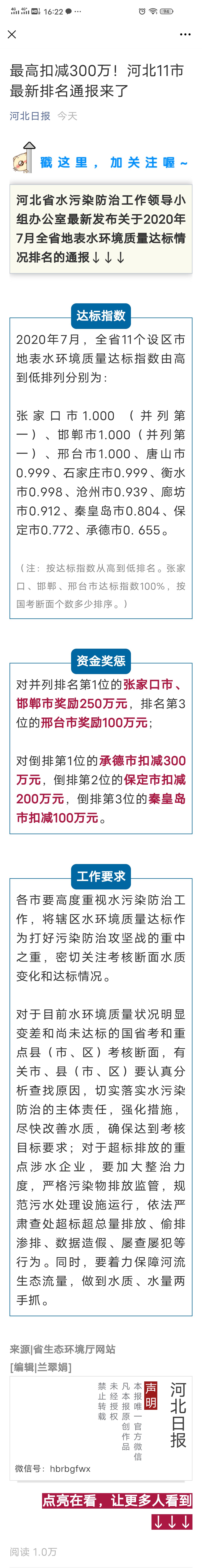 河北日报微信:最高扣减300万!河北11市最新排名通报来了