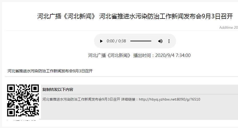 河北广播《河北新闻》:河北省推进水污染防治工作新闻发布会9月3日召开