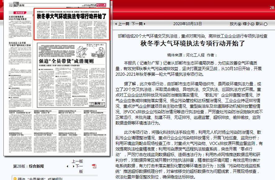 河北工人报:秋冬季大气环境执法专项行动开始了
